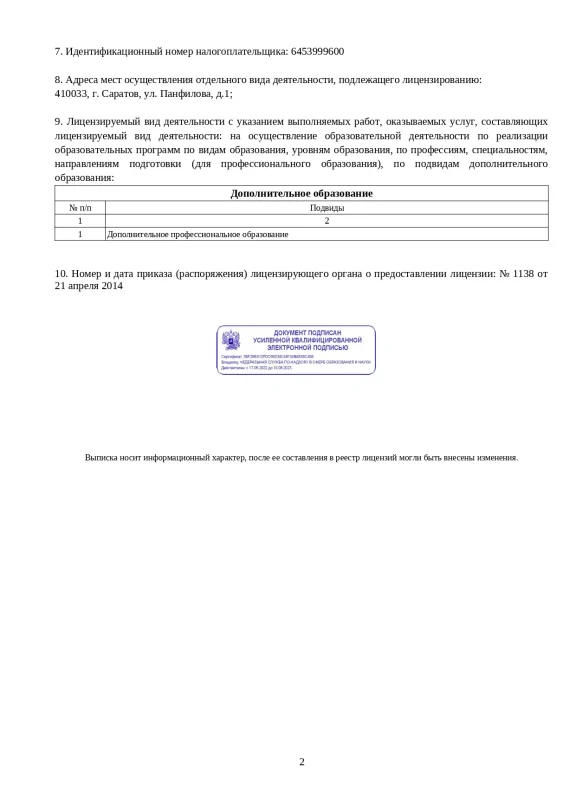 По данным Интерпрофстата, в 2018 г. мы вошли в 100 лучших образовательных учреждений России. По данным Росстата, в рамках аудита социально-экономического проекта «Элита Нации», заняли 34 место среди 700 предприятий России по ОКВЭД «Образование профессиональное дополнительное». Стали №1 в Саратовской области, №5 в Приволжском федеральном округе и №23 в России, в национальной номинации «Лидер отрасли» 2021, по данным ФНС и Росстата.